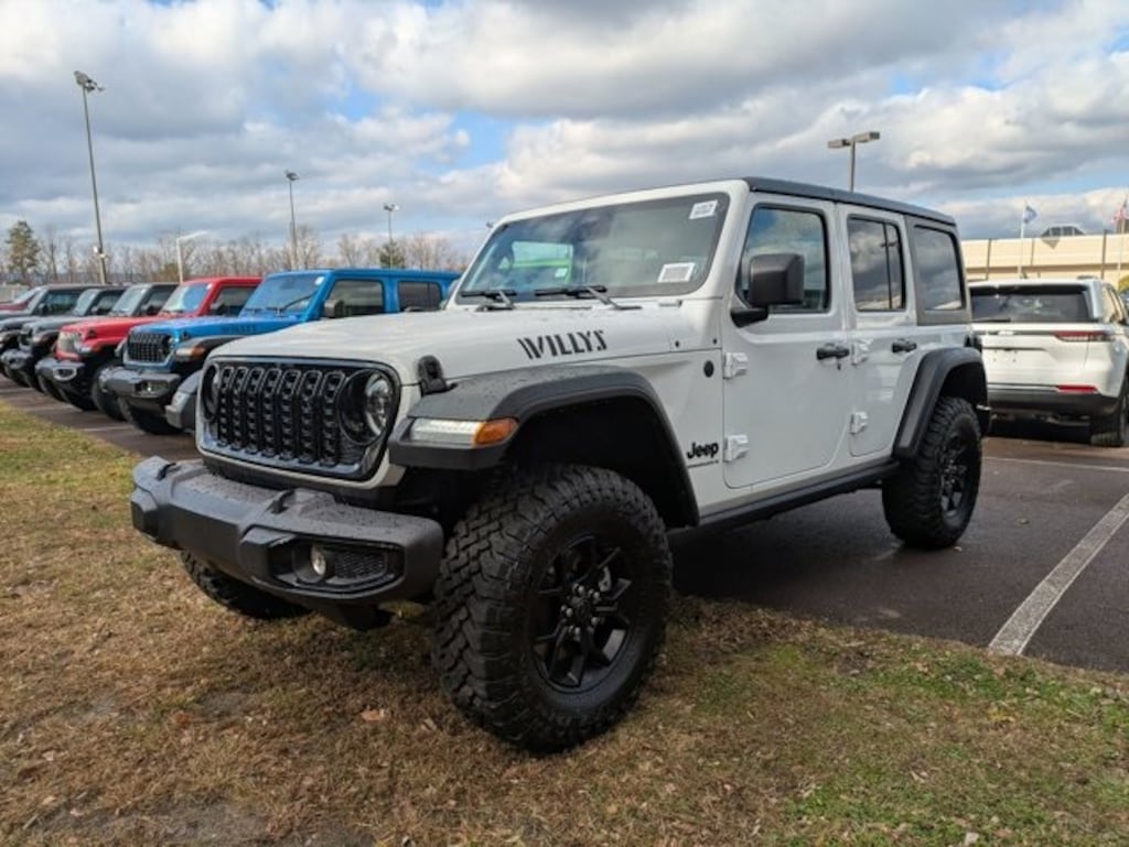 Convenience Group (2-Door Passive Entry, Front Door Locks, Air Conditioning with Auto Temp Control, Air Filtering, Cluster 7.0" TFT Color Display, Emergency/Assistance Call, Heated Front Seats, Heated Steering Wheel, and Universal Garage Door Opener), Quick Order Package 22W Willys (4-Wheel Drive Swing Gate Decal, 7 and 4 Pin Wiring Harness, Advanced Brake Assist, Automatic Headlamps, Auxiliary Switches, Black Grille, Class II Receiver Hitch, Conventional Differential Front Axle, Corning Gorilla Glass, Dana M210 Wide HD Tube Front Axle, Dana M220 Wide Rear Axle, Daytime Running Lamps LED Accents, Deep Tint Sunscreen Windows, E-Locker Rear Axle, Enhanced Adaptive Cruise Control, Front LED Fog Lamps, Full Speed Forward Collision Warning Plus, Injection Molded Black Rear Bumper, LED Premium Reflector Headlamps, Mold in Color Bumper with Gloss Black, Molded in Color Rubicon Highline Flare, MOPAR All-Weather Floor Mats, Off-Road Plus Mode, Power Heated Mirrors, Premium Wrapped Steering Wheel, Security Alarm, Sun Visors with Illuminated Vanity Mirrors, Wheels: 17" x 7.5" Painted Black, Willy's Suspension, and Willys Hood Decal), Safety Group (Auto High Beam Headlamp Control, Blind Spot and Cross Path Detection, LED Taillamps, and ParkSense Rear Park Assist System), 12.3" Touchscreen Display, 4-Wheel Disc Brakes, 4G LTE Wi-Fi Hot Spot, 8 Speakers, ABS brakes, Air Conditioning, AM/FM radio: SiriusXM with 360L, Apple CarPlay, Apple CarPlay/Android Auto, Aux Battery, Black 3-Piece Hard Top, Brake assist, Cloth Low-Back Bucket Seats, Compass, Connectivity - US/Canada, Delay-off headlights, Driver door bin, Driver vanity mirror, Dual front impact airbags, Dual front side impact airbags, Electronic Stability Control, For More Info, Call 800-643-2112, Freedom Panel Storage Bag, Front anti-roll bar, Front Bucket Seats, Front Center Armrest w/Storage, Front fog lights, Front reading lights, Google Android Auto, Illuminated entry, Integrated Center Stack Radio, Integrated roll-over protection, Jeep Trail Rated Kit, Low tire pressure warning, Myflexcare Service Plan, Non-Lock Fuel Cap Without Discriminator, Normal Duty Suspension, Occupant sensing airbag, Outside temperature display, Overhead airbag, Panic alarm, ParkView Rear Back-Up Camera, Passenger door bin, Passenger vanity mirror, Power steering, Power windows, Radio data system, Radio: Uconnect 5 with 12.3" Display, Rear anti-roll bar, Rear reading lights, Rear Window Defroster, Rear Window Wiper/Washer, Remote keyless entry, SiriusXM Radio Service, SiriusXM with 360L, Speed control, Split folding rear seat, Steering wheel mounted audio controls, Stop-Start Dual Battery System, Tachometer, Telescoping steering wheel, Tilt steering wheel, Traction control, Trip computer, Variably intermittent wipers, and Wheels: 17" x 7.5" Black Steel Styled. *Your additional costs are sales tax, tag and title fees for the state in which the vehicle will be registered, any dealer-installed options (if applicable) and a dealer processing fee ($800 Maryland; not required by law); ($477 Pennsylvania). Prices are subject to change, and prior sales are excluded from these offers. While every reasonable effort is made to ensure the accuracy of this information, we are not responsible for any errors or omissions contained on these pages. Please verify any information in question with the dealer.