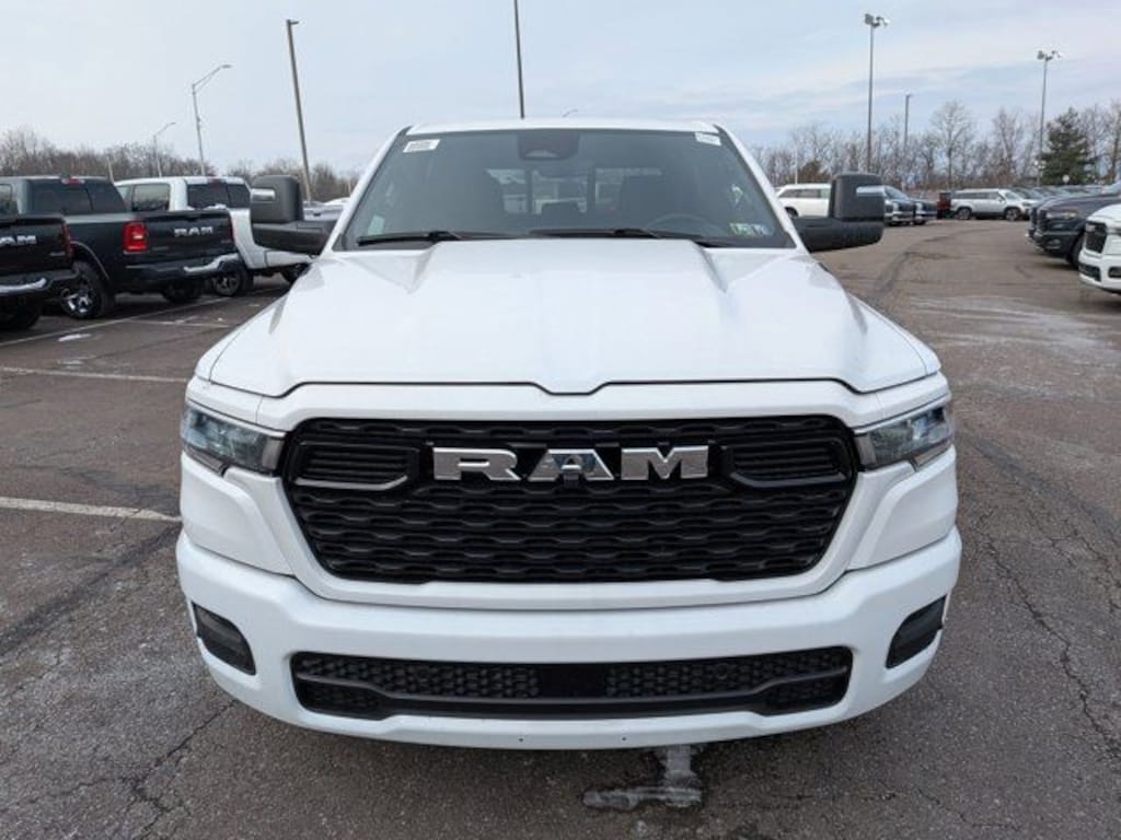 Big Horn Level 2 Equipment Group (115V Auxiliary Power Outlet, 115V Auxiliary Rear Power Outlet, 12" Touchscreen Display, 2nd Row In Floor Storage Bins, 400W Inverter, 4G LTE Wi-Fi Hot Spot, 9 Amplified Speakers w/Subwoofer, Air Conditioning ATC w/Dual Zone Control, Apple CarPlay, Auto Power-Folding Mirrors, Auto-Dimming Exterior Driver Mirror, Auto-Dimming Rear-View Mirror, Black Exterior Mirrors, Black Premium Power Mirrors, Cluster 7.0" TFT Color Display, Configurable Drive Mode, Connected Travel & Traffic Services, Connectivity - US/Canada, Convex Wide-Angle Exterior Mirror Insert, Exterior Mirrors Courtesy Lamps, Exterior Mirrors w/Heating Element, Exterior Mirrors w/Supplemental Signals, Glove Box Lamp, Google Android Auto, GPS Antenna Input, GPS Navigation, HD Radio, Heated Front Seats, Heated Steering Wheel, Integrated Voice Command w/Bluetooth, Leather Wrapped Steering Wheel, LED Dome Lamp w/On/Off Switch, LED Footwell Lighting, Media Hub w/2 Charge Only USBs, Overhead LED Lamps, Power 2-Way Driver Lumbar Adjust, Power Adjust 8-Way Driver Seat, Power Adjustable Pedals, Premium Overhead Console, Radio: Uconnect 5 Nav w/12.0" Display, Rear Power Sliding Window, Rear Window Defroster, Remote Tailgate Release, Security Alarm, SiriusXM w/360L, Steering Wheel Mounted Audio Controls, Sun Visors w/Illuminated Vanity Mirrors, Universal Garage Door Opener, and USB Host Flip), Quick Order Package 23Z Big Horn (Big Horn Badge), Sport Appearance Package (3 Rear Seat Head Restraints, 4 Way Front Headrests, Black Interior Accents, Body Color Door Handles, Body Color Front Bumper, Body Color Rear Bumper w/Step Pads, Body Color Tailgate Handle, Bucket Seats, Deluxe Cloth Bucket Seats, Front Seat Back Map Pockets, Full Length Floor Console, Grille Surround 1 Body Color Texture 1 Black, Manual Adjust 4-Way Front Passenger Seat, RAM Grille Badge - Chrome, Rear 60/40 Folding Seat, and Rear Center Armrest), Trailer Tow Group (Accent Color Tailgate Handle, Black Trailer Tow Power Mirrors, Manual Folding Exterior Mirrors, Manual Telescoping Mirrors, Mirror Clearance/Running Lights, Power-Adjustable Convex Aux Mirrors, Trailer Brake Control, Trailer Reverse Steering Control, Trailer Tire Pressure Monitoring System, and Trailer Tow Mirrors), 3.21 Rear Axle Ratio, 4-Wheel Disc Brakes, 6 Speakers, ABS brakes, Air Conditioning, Alloy wheels, AM/FM radio, Apple CarPlay/Android Auto, Auto High-beam Headlights, Brake assist, Bumpers: chrome, Cloth Bench Seat, Compass, Delay-off headlights, Driver door bin, Dual front impact airbags, Dual front side impact airbags, Electronic Stability Control, Front anti-roll bar, Front Center Armrest w/Storage, Front fog lights, Front reading lights, Front wheel independent suspension, Fully automatic headlights, Heated door mirrors, Illuminated entry, Low tire pressure warning, Manufacturer's Statement of Origin, Occupant sensing airbag, Outside temperature display, Overhead airbag, Overhead console, Panic alarm, ParkView Rear Back-Up Camera, Passenger door bin, Passenger vanity mirror, Power door mirrors, Power steering, Power windows, Radio data system, Radio: Uconnect 5 W w/8.4" Display, Rear anti-roll bar, Rear seat center armrest, Rear step bumper, Remote keyless entry, Speed control, Split folding rear seat, Supplier Part Tracking (J-1), Tachometer, Telescoping steering wheel, Tilt steering wheel, Traction control, Trip computer, Variably intermittent wipers, Voltmeter, Wheels: 18" x 8" Cast-Aluminum Painted, and Wheels: 20" x 9" Aluminum Chrome Clad. *Your additional costs are sales tax, tag and title fees for the state in which the vehicle will be registered, any dealer-installed options (if applicable) and a dealer processing fee ($800 Maryland; not required by law); ($490 Every Internet Price includes current applicable manufacturer offers, but certain conditions apply to some of these offers. The offers and conditions on this vehicle are: $500 - 2025 National 2025 Military Bonus Cash. Exp. 01/04/2027