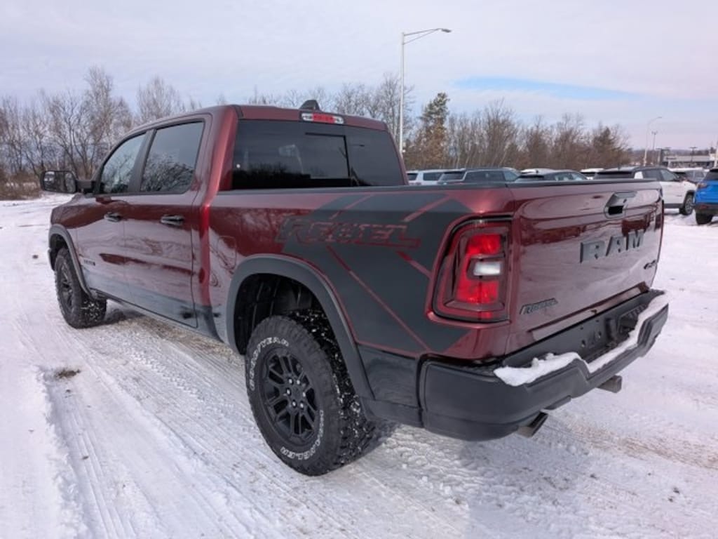 Quick Order Package 21W Rebel, Rebel Level 2 Equipment Group (115V Auxiliary Rear Power Outlet, 14.4" Touchscreen Display, 2-Door Passive Entry, Front Door Locks, 4G LTE Wi-Fi Hot Spot, Accent Color Door Handles, Accent Color Premium Power Mirrors, Accent Color Tailgate Handle, Apple CarPlay, Auto Power-Folding Mirrors, Auto-Dimming Exterior Driver Mirror, Black Painted Exterior Mirrors Caps, Connected Travel and Traffic Services, Connectivity - US/Canada, Convex Wide-Angle Exterior Mirror Insert, Disassociated Touchscreen Display, Driver Seat Memory, Dual Wireless Charging Pad, Exterior Mirrors Approach Lamps, Exterior Mirrors Courtesy Lamps, Exterior Mirrors with Heating Element, Exterior Mirrors with Memory, Exterior Mirrors with Supplemental Signals, Front Passenger Interactive Display, Global Telematics Box Module, Google Android Auto, GPS Antenna Input, GPS Navigation, Harman/Kardon 19 Speaker Premium Sound, HD Radio, Heated Second Row Seats, Integrated Center Stack Radio, Integrated Voice Command with Bluetooth, Media Hub with 2 Charge Only USBs, Off-Road Information Pages, Power 2-Way Passenger Lumbar Adjust, Power Adjust 8-Way Front Passenger Seat, Power Adjustable Pedals with Memory, Power Tailgate, Proximity Approach/Departure Lamps, Radio: Uconnect 5 Nav with 14.4" Display, Radio/Driver Seat/Mirrors/Pedals Memory, Rain Sensitive Windshield Wipers, Rear Window Defroster, Security Alarm, SiriusXM Radio Service, SiriusXM with 360L, Smartphone as a Key Capable, and USB Host Flip), 10 Speakers, 3.92 Rear Axle Ratio, 4 Way Front Headrests, 4-Wheel Disc Brakes, ABS brakes, Active Noise Control System, Air Conditioning, Alloy wheels, AM/FM radio: SiriusXM with 360L, Apple CarPlay/Android Auto, Auto High-beam Headlights, Auto-dimming Rear-View mirror, Automatic temperature control, Black Exterior Mirrors, Brake assist, Bucket Seats, Cloth/Vinyl Bucket Seats, Compass, Delay-off headlights, Dome Dual LED Reading Lamp, Driver door bin, Driver vanity mirror, Dual front impact airbags, Dual front side impact airbags, Dual-Pane Panoramic Sunroof, Electronic Stability Control, Front anti-roll bar, Front Bucket Seats, Front Center Armrest w/Storage, Front dual zone A/C, Front fog lights, Front reading lights, Front Seat Back Map Pockets, Front wheel independent suspension, Full Length Upgraded Floor Console, Fully automatic headlights, Garage door transmitter, Heated door mirrors, Heated Front Seats, Heated front seats, Heated Steering Wheel, Heated steering wheel, Illuminated entry, Leather steering wheel, Low tire pressure warning, Manual Folding Exterior Mirrors, Manufacturer's Statement of Origin, MyFlexCare Service Plan, Navigation System, Occupant sensing airbag, Outside temperature display, Overhead airbag, Overhead console, Panic alarm, ParkView Rear Back-Up Camera, Passenger door bin, Passenger vanity mirror, Power 2-Way Driver Lumbar Adjust, Power Adjust 8-Way Driver Seat, Power door mirrors, Power driver seat, Power steering, Power windows, Radio data system, Radio: Uconnect 5 Navigation with 12.0" Display, Rear 60/40 Folding Seat, Rear anti-roll bar, Rear seat center armrest, Rear step bumper, Remote keyless entry, Speed control, Split folding rear seat, Steering wheel mounted audio controls, Tachometer, Telescoping steering wheel, Tilt steering wheel, Traction control, Trailer Brake Control, Trip computer, Variably intermittent wipers, Voltmeter, and Wheels: 18" x 8.0" Painted Mid-Gloss Black. *Your additional costs are sales tax, tag and title fees for the state in which the vehicle will be registered, any dealer-installed options (if applicable) and a dealer processing fee ($800 Maryland; not required by law); ($477 Every Internet Price includes current applicable manufacturer offers, but certain conditions apply to some of these offers. The offers and conditions on this vehicle are: $3500 - 2026 National Retail Consumer Cash . Exp. 01/05/2026 $500 - 2026 National 2026 First Responder Bonus Cash . Exp. 01/05/2026